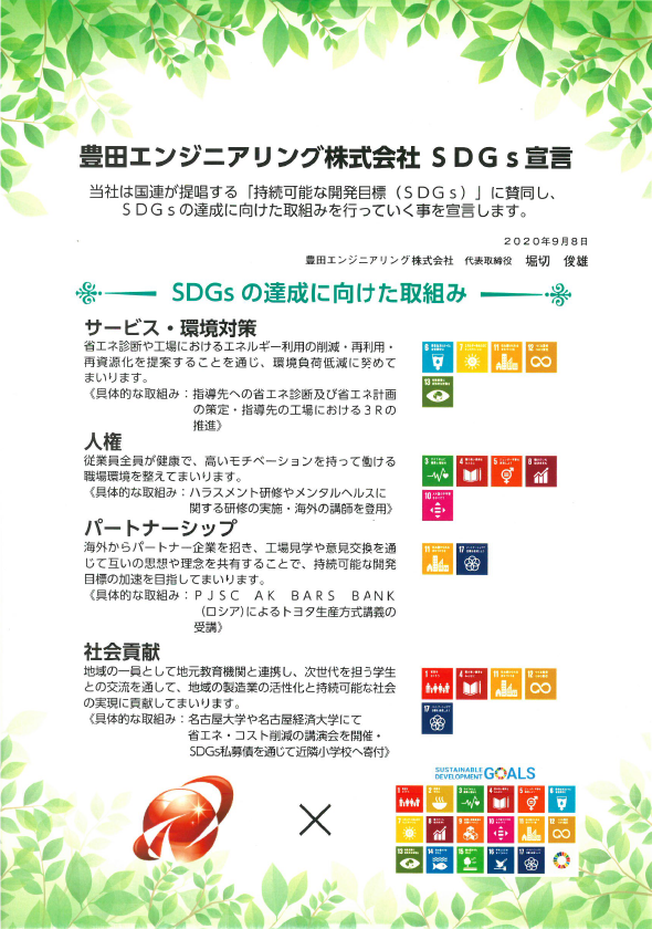 弊社はこのたびSDGs宣言を行いました。国連が提唱する「持続可能な開発目標(SDGs)」の達成を全社の共通課題として捉え、国内外において持続可能な社会の実現に貢献していきます。